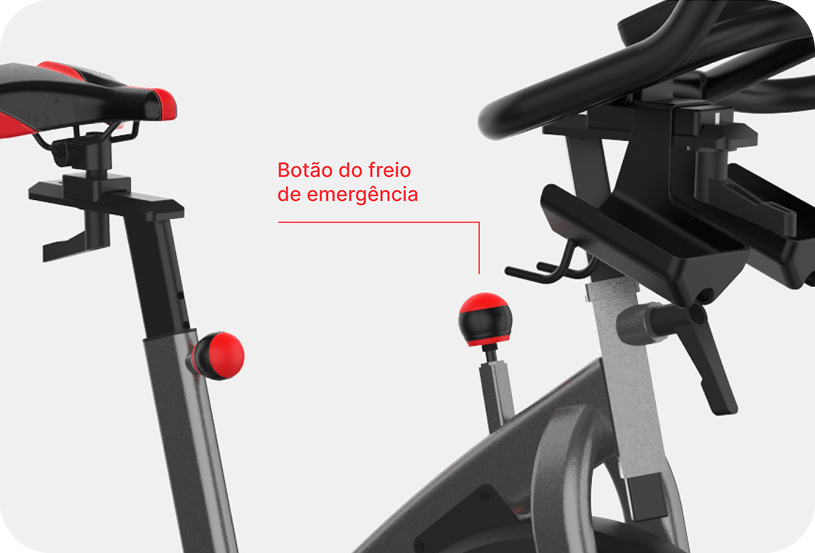 Freio duplo magnético e freio de emergência protegidos por carenagem para evitar qualquer acidente.
